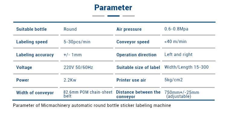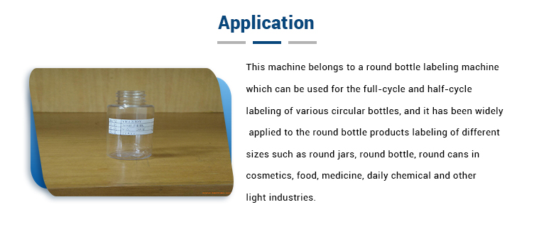 Denne maskine hører til en mærkningsmaskine med rund flaske, som kan bruges til helcyklus- og halvcykelmærkning af forskellige cirkulære flasker, og den er blevet anvendt i vid udstrækning på mærkning med runde flasker i forskellige størrelser, såsom runde krukker, rund flaske , runde dåser inden for kosmetik, mad, medicin, daglig kemisk industri og andre lette industrier. Udstyrssammensætning: Elektrisk kabinet, Transportmekanisme, Separat flaskeenhed, Rullemærkatenhed, Børsteetikettenhed, 1 # mærkningsmotor, Driftssystem og kontrolsystem.