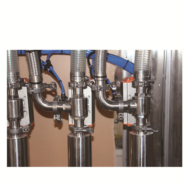 3. Det kan imødekomme behovet for højere ydelse ved at vedtage to-skinne flaskeindføring, to-skinnefyldning og to-dysedæksel skrue eller rulle og presning. Denne maskine har stor påfyldningsnøjagtighed og kan let adskilles og steriliseres ved at vedtage hurtig-sammenføjet rustfri stålpistonpumpe. Med brugen af konstant drejningsmomenthætte og pneumatisk beskytter er den forseglede mund lækkende.